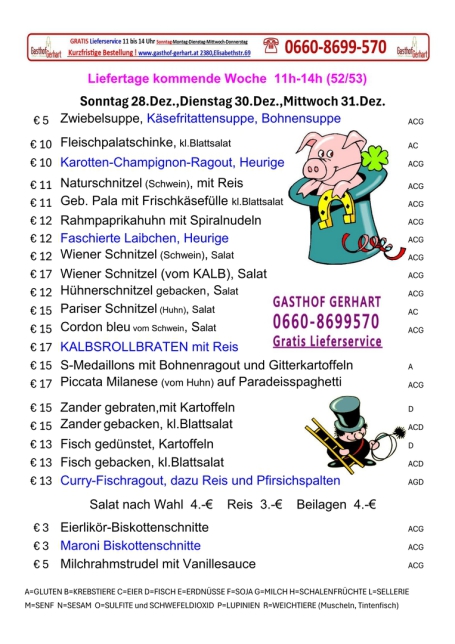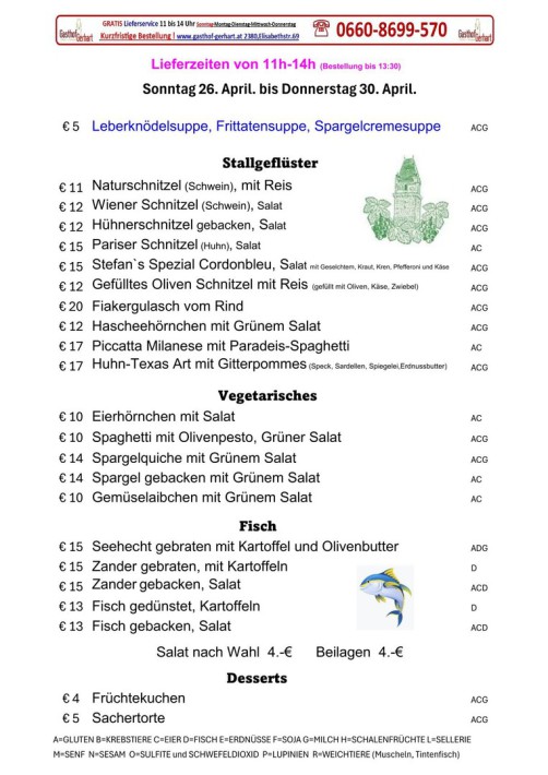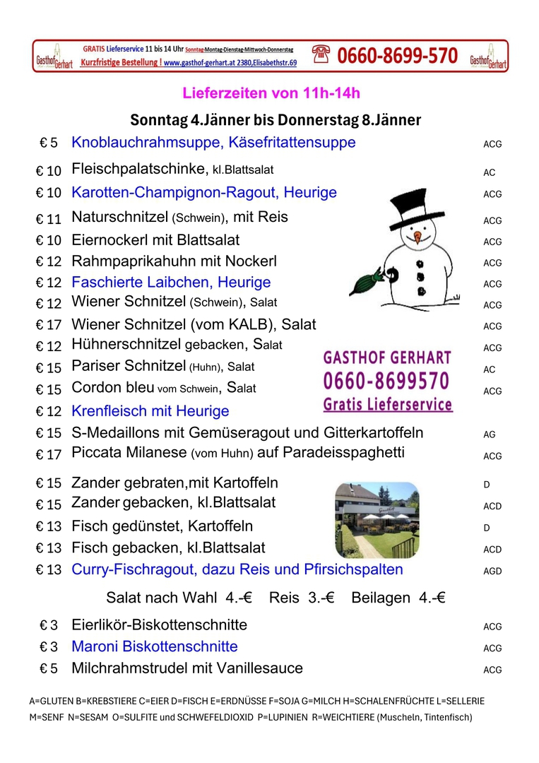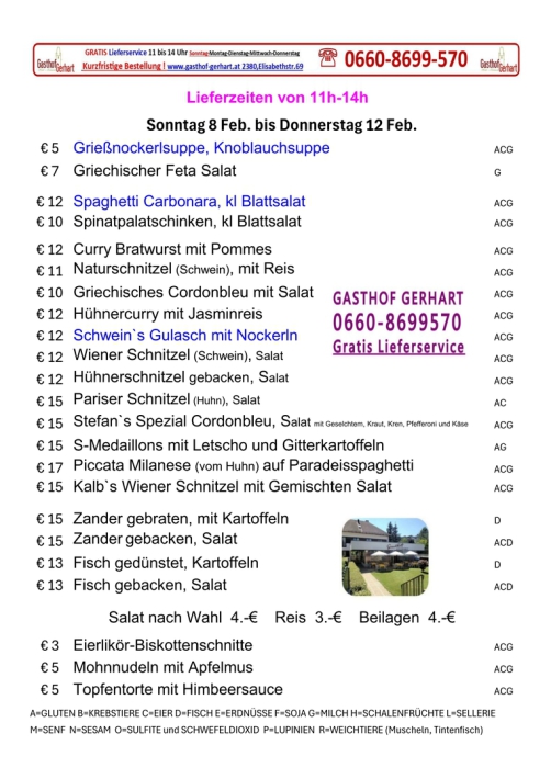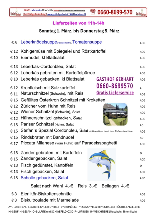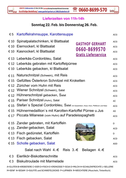 Wir bereiten die Speisen mit Sorgfalt und Fachwissen zu, machen uns viele Gedanken mit der Kombination von Beilagen, Saucen, probieren die Gerichte, wollen ihren Geschmack treffen. Wenn also, eine Kombination nicht ihrer Erwartung enspricht, BITTE, teilen sie uns das mit. info@gasthof-gerhart.at